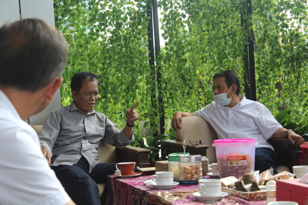 DISKUSI HANGAT : Ketua DPRD Bambang “Kribo” Kusriyanto menerima audensi dengan pengurus PWI Jateng di teras ruang kerjanya, lantai II, Gedung Berlian.(foto: priyanto)