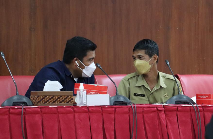 SIARAN DAERAH. Muhammad Saleh dan Wiyanto dalam diskusi di Ruang Giri Manik Kantor Bupati Kabupaten Wonogiri, Senin (21/3/2022). (foto bintari setiawati)