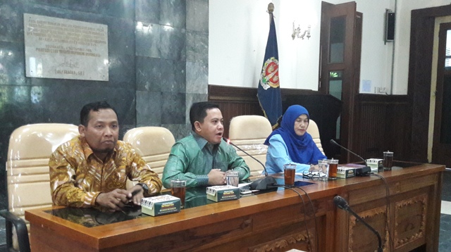 PIMPIN KOORDINASI. Sukirman (tengah) beserta Wakil Ketua II DPRD Jateng Ahmadi memimpin studi banding ke DPRD DIY, Selasa (8/5/2018). (foto fajarsari christiawan)