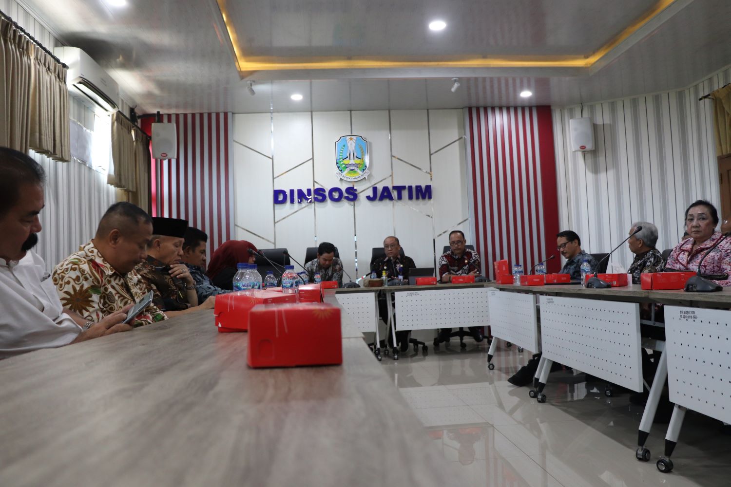 Rombongan dipimpin Ketua Komisi E Abdul Hamid didampingi Sekretaris Dinas Sosial Provinsi Jawa Tengah, Kepala Biro Kesra diterima oleh Sekretaris Dinas Sosial Jawa Timur Yusmanu di Ruang Rapat lt 2, kantor setempat.