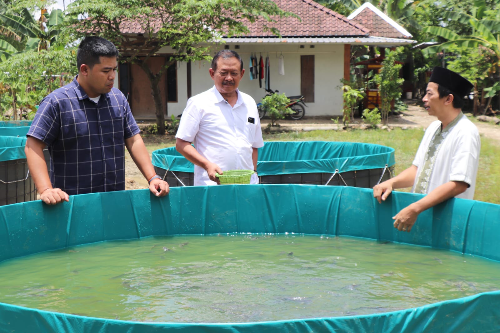 LIHAT KOLAM LELE: Anggota DPRD Jateng Abu Nafi melihat pengembangbiakan lele di Kecamatan Blora Kota.(foto: evi rahmawati)