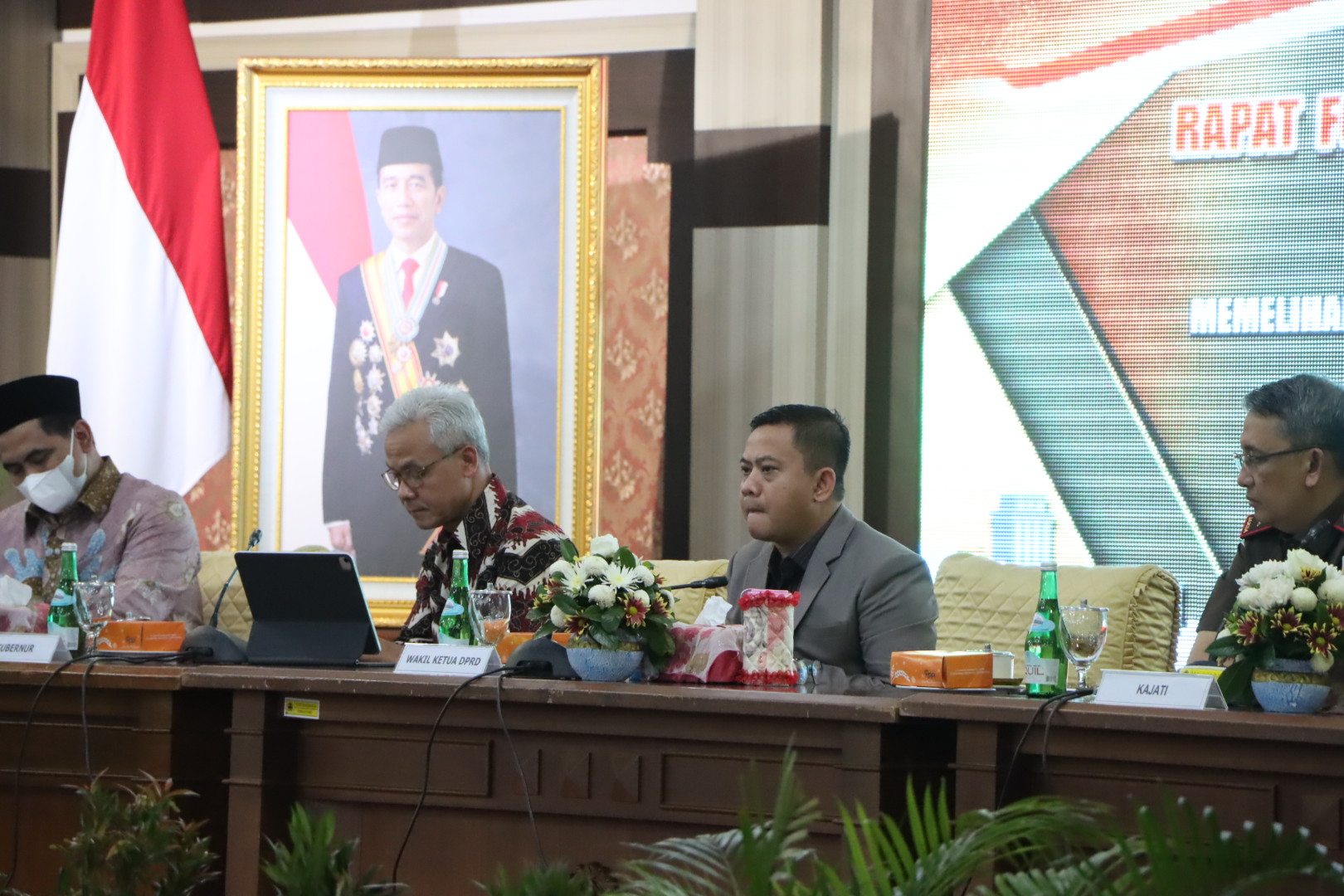 SEMARANG – Pemerintah Provinsi Jateng tengah mengevaluasi dampak kenaikan harga bahan bakar minyak (BBM) terutama pada harga dan ketersediaan pangan. Hal tersebut menjadi pembahasan bersama dalam rapat Forum Komunikasi Pimpinan Daerah (Forkopimda) Jateng di Gedung Gradhika Bakti Praja, Semarang, belum lama ini. Rapat dipimpin langsung Gubernur Ganjar Pranowo. Wakil Ketua DPRD Jateng Sukirman dan Ferry Wawan Cahyono turut mengikuti rapat tersebut.