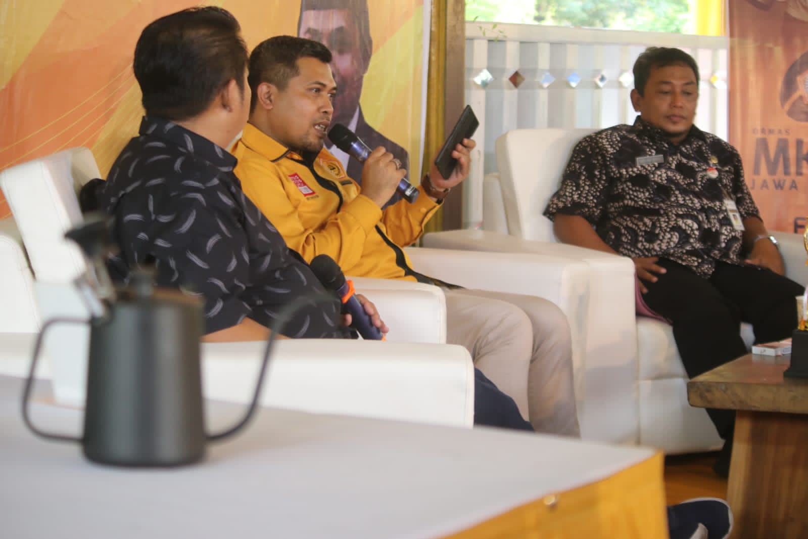 DIALOG KOPI. Ferry Wawan Cahyono dalam acara FGD dengan tema ‘Startegi Pengembangan UMKM di Jateng,’ di Anjungan Wonogiri Grand Maerakaca Kota Semarang, Rabu (31/8/2022). (foto ganang faisol)