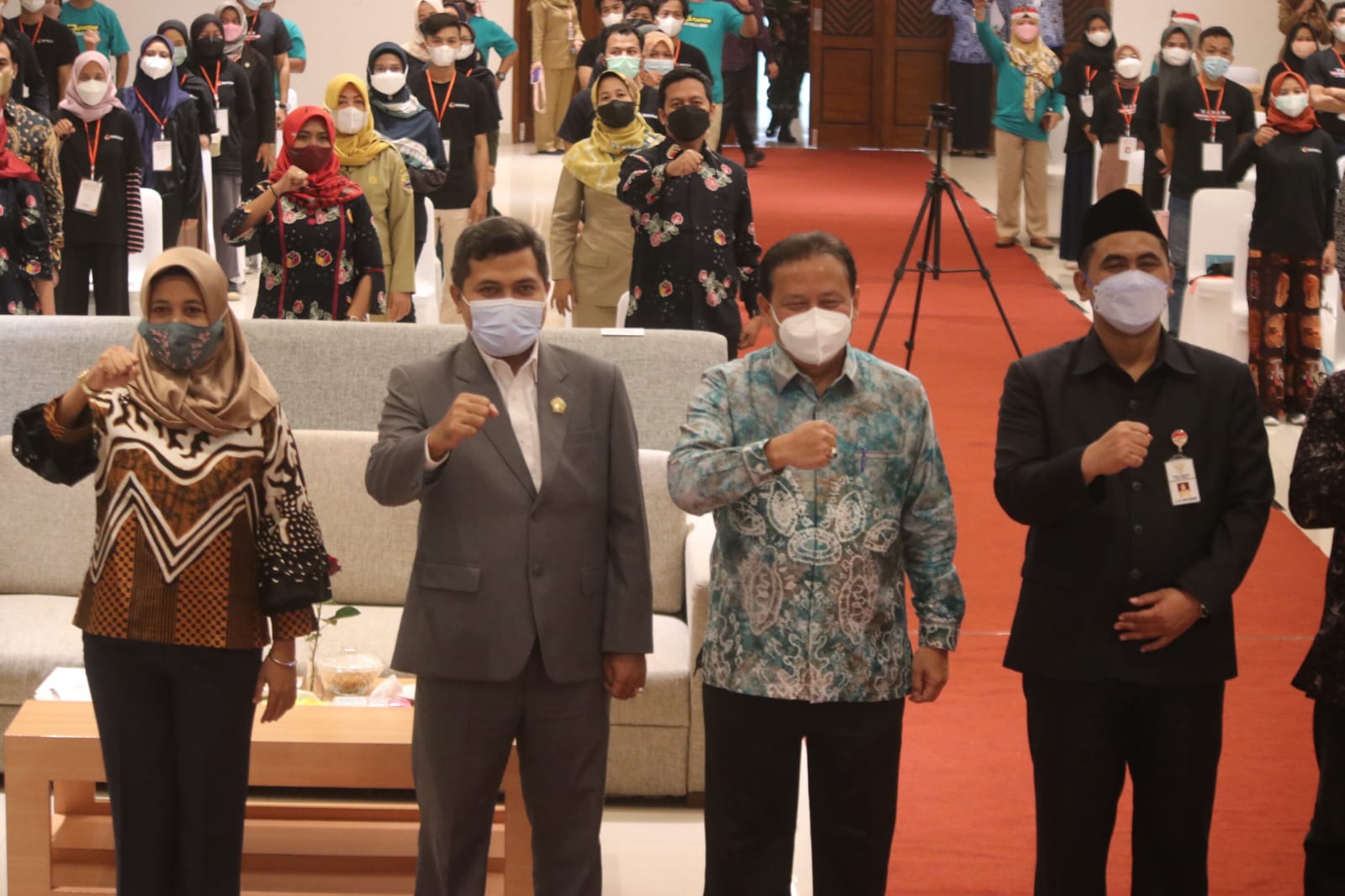 FOTO BERSAMA : Wagub Taj Yasi, Ketua Bawaslu RI Abhan, Wakil Ketua DPRD Jateng Ferry Wawan Cahyono serta pimpinan Bawaslu Jateng berfoto bersama.(foto: aldy reynaldi)