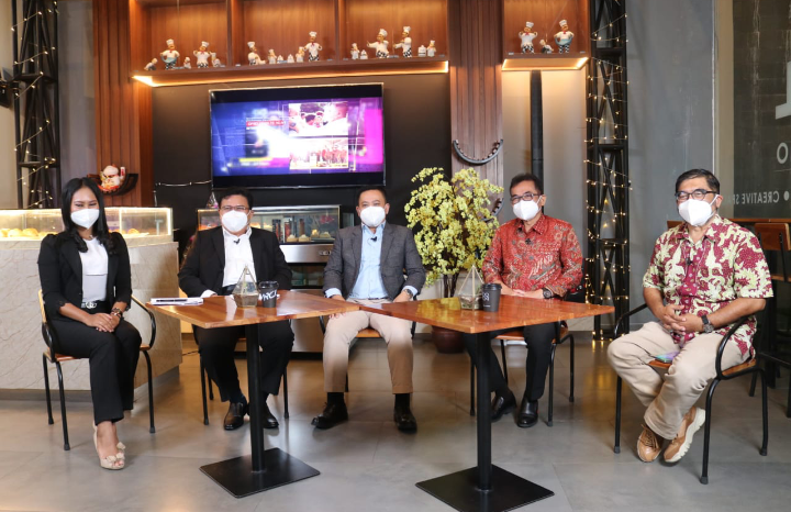 BICARA PROTKES. Sukirman (tengah), saat menjadi pembicara utama dalam ‘Dialog Aspirasi DPRD Jawa Tengah’ di Studio TATV Solo di Kota Surakarta, Selasa (22/6/2021) dengan tema ‘Positif Covid-19 di Jateng Naik, Ada Apa?’. (foto soni dinata)
