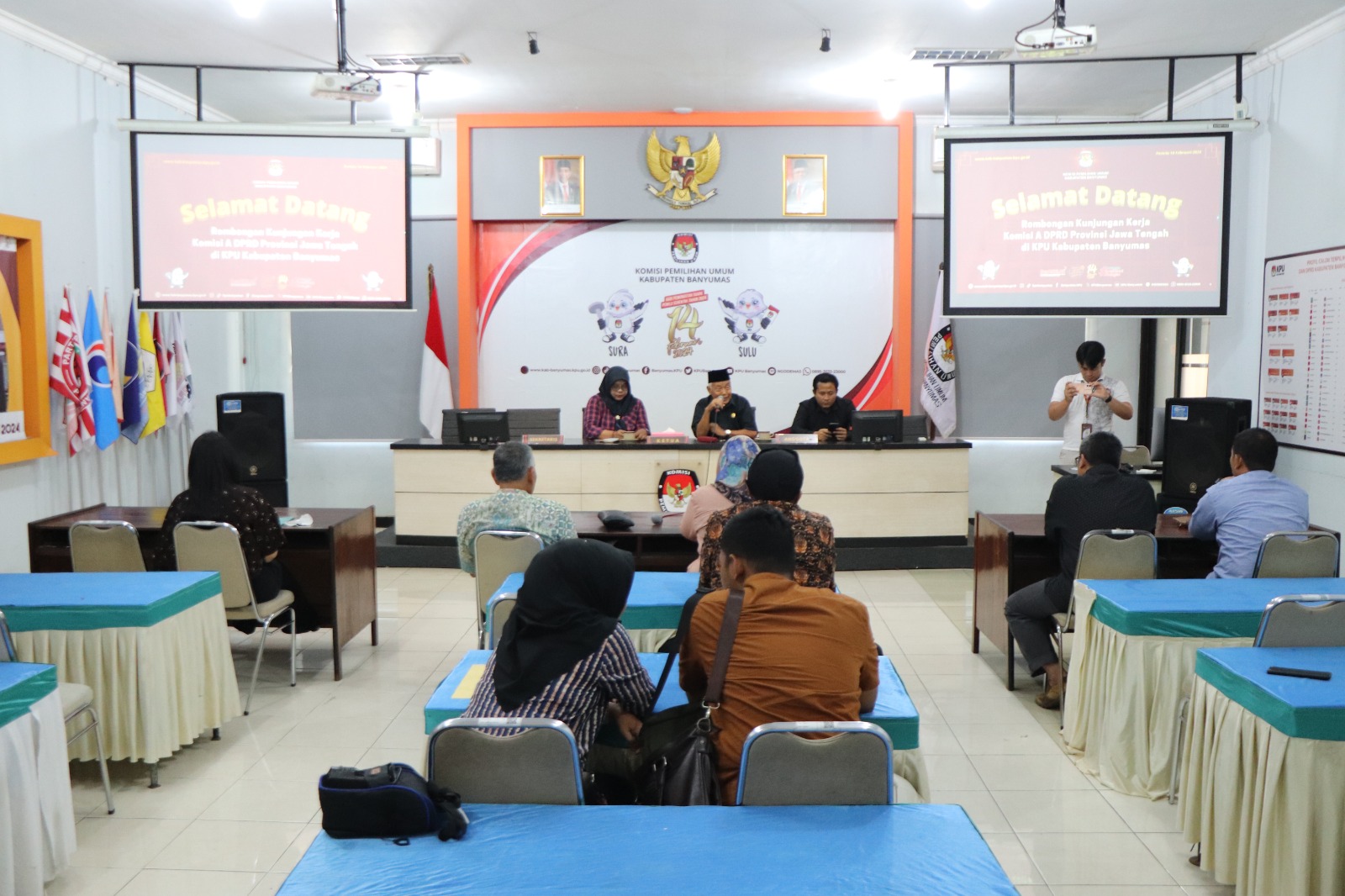 BANYUMAS – Komisi A DPRD Jateng pada Selasa (20/2/2024), melakukan kunjungan kerja ke KPU Banyumas. Dalam kunjungan tersebut Komisi A diterima Ketua KPU Banyumas Rofingatun Khasanah beserta jajarannya di ruang rapat. Dalam kesempatan itu pimpin rombongan, Soetjipto menyampaikan, pihaknya turut memantau penyelenggaraan pemilu di Banyumas.