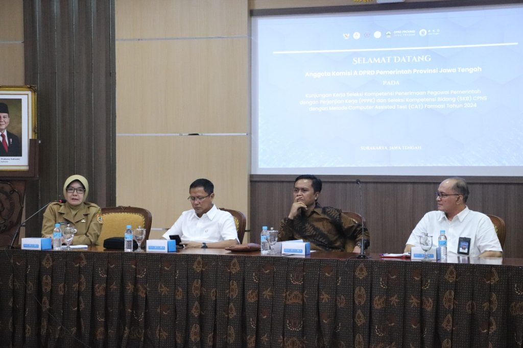 SURAKARTA – Komisi A DPRD Provinsi Jateng memantau pelaksanaan tes PPPK di Ruang Sidang 4 di Gedung Prakoso Universitas Sebelas Maret Surakarta (UNS), Senin (9/12/2024). Pada kesempatan itu, Wakil Ketua Komisi A Mukafi Fadli menjelaskan maksud dari kunjungan Komisi A ke Kampus UNS hari ini.