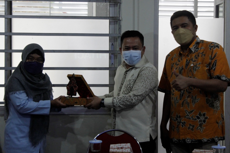 SOUVENIR : Wakil Ketua DPRD Sukirman bersama Ketua Komisi A Muhammad Saleh memberi souvenir kepada Kasubag Produk Hukum Kabupaten/Kota Biro Hukum Setda DIY Siwi Sari. (foto: dyana sulistyana)