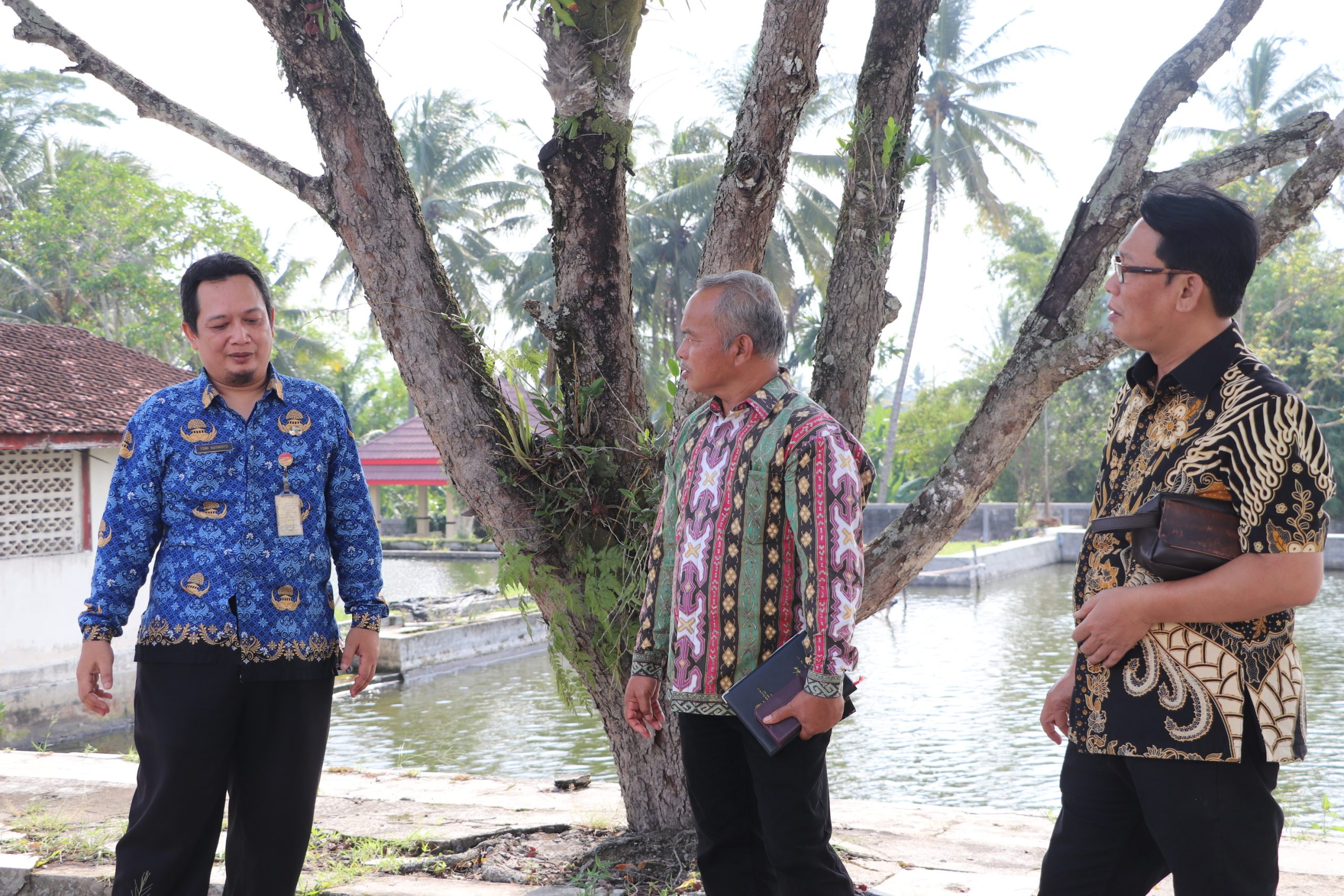 KOLAM BENIH : Ketua Komisi B Sarno beserta Kepala Balai Budidaya Ikan Air Payau dan Laut Aris Setijono berada di Loka Ngrajek Kabupaten Magelang.(foto: ayuandani/priyanto)