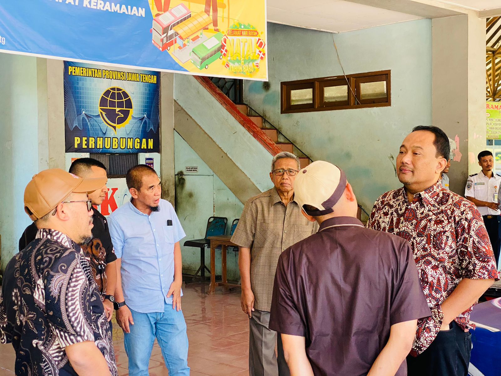 PANTAU TERMINAL. Komisi D DPRD Provinsi Jateng memantau Terminal Kajen, Kabupaten Pekalongan, Selasa (19/3/2024), untuk melihat kesiapan pihak pengelola terminal menghadapi arus mudik lebaran tahun ini. (foto mentari amanda)
