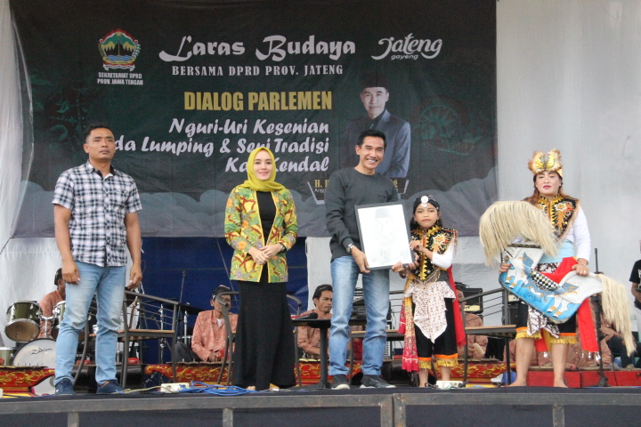 KENDAL – Gerak lincah pemuda-pemudi dalam menampilkan kesenian kuda lumping khas Desa Selokaton membuka acara Dialog Parlemen Media Tradisional DPRD Provinsi Jawa Tengah dengan tema “Nguri-uri Kesenian Kuda Lumping dan Seni Tradisi Kabupaten Kendal” di Taman Desa Selokaton, Kecamatan Sukorejo, Kendal, Minggu (30/10/2022).