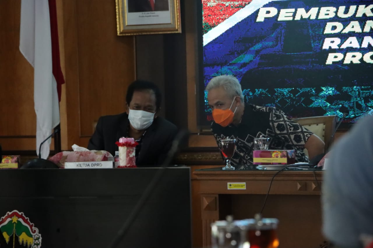 Usai memaparkan laporannya, dilanjut dengan sambutan Gubernur Ganjar Pranowo didampingi Wagub Taj Yasin. Pada kesempatan itu, ia memaparkan sejumlah hal seperti persoalan ekonomi rakyat, kemiskinan, dan pengangguran selama masa pandemi Covid-19.