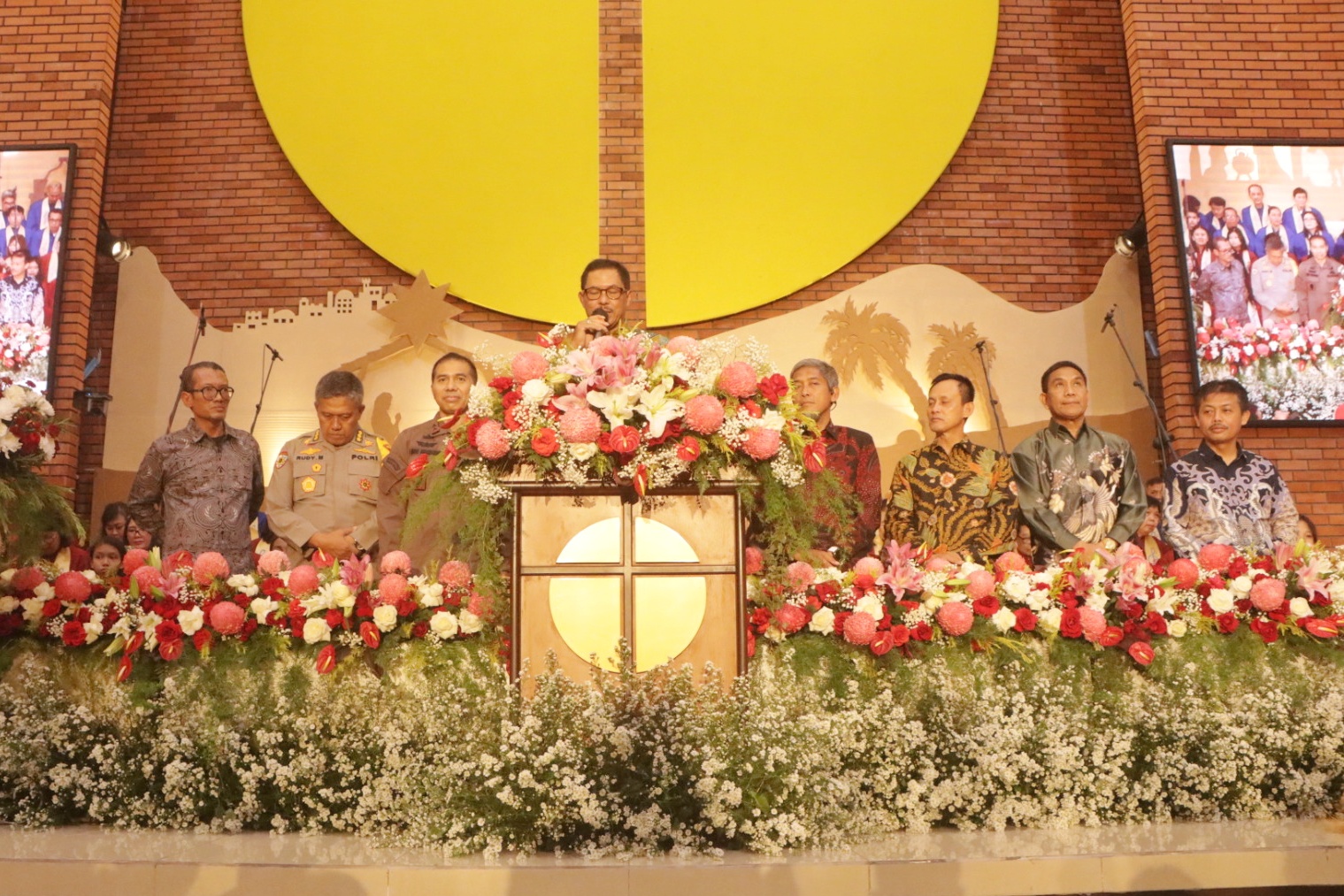 SEMARANG – Pj. Gubernur Jateng Nana Sudjana bersama pejabat forkopimda mengunjungi beberapa gereja di Kota Semarang dalam pelaksanaan ibadah/ misa malam Natal, Minggu (24/12/2023). Mewakili Ketua DPRD Provinsi Jateng, Anggota Komisi D Danie Budi Tjahjono ikut mendampingi kunjungan ke Gereja Katedral Santa Perawan Maria Ratu Rosario Suci di Jalan dokter Sutomo dan Gereja Kristen Indonesia (GKI) Beringin, Jalan Piere Tendean Kota Semarang.