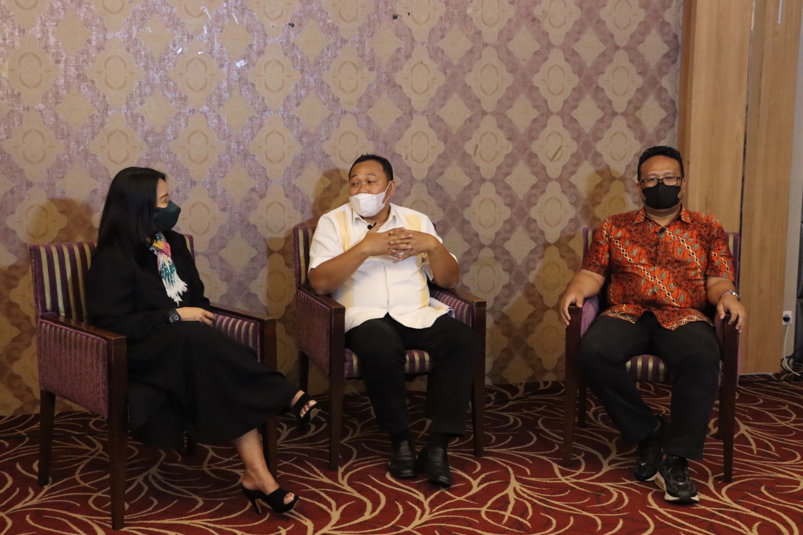 SOAL PEREMPUAN. Dwi Yasmanto (tengah) dalam acara ‘Ngobrol Bareng Dewan (Ngode)’ yang digelar di Kota Semarang, Selasa (18/1/2022). (foto cahya dwi prabowo)