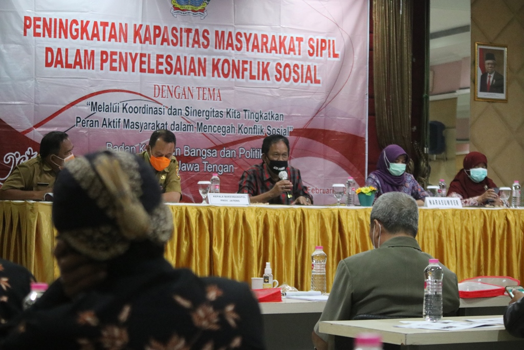 Penegasan tersebut disampaikan di hadapan perwakilan organisasi kemasyarakatan (ormas) Kabupaten Semarang, Senin (22/2/2020). Dalam acara yang diinisiasi oleh Badan Kesatuan Bangsa dan Politik (Kesbangpol) Jateng di Hotel C3, Ungaran, dihadiri sejumlah ormas seperti Ansor, MTA, dan Forum Kerukunan Umat Beragama (FKUB). Diskusi “Peningkatan Kapasitas Masyarakat Sipil dalam Penyelesaian Konflik Sosial” juga turut menghadirkan narasumber St Sukirno (Komisi A), Sholeka Kurniawati (Komisi B) dan, Ida Nurul Farida (Komisi E).