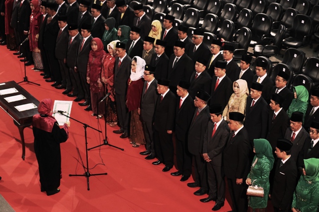 Agenda selanjutnya yakni pengambilan sumpah/ janji jabatan yang diucapkan oleh 120 DPRD terpilih. Setelah diambil sumpah/ janji dan penyematan pin jabatan DPRD, pimpinan dewan periode terdahulu melakukan serah terima palu rapat dan dipersilahkan untuk turun.