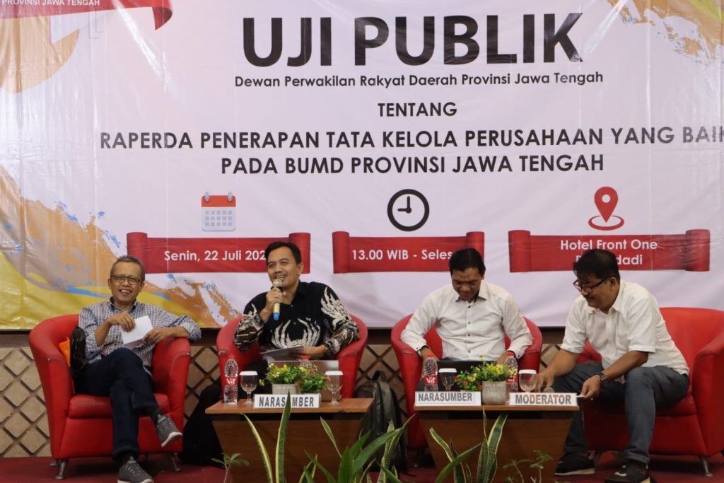 Sebagai lembaga negara dalam menjalankan fungsi legislasinya, DPRD berkewajiban membuat sekaligus mengesakan perda dalam hal ini terkait tata Kelola BUMD. Pada kesempatan itu selain Bambang Haryanto menjadi narasumber, juga ada Untung Juanto dari PT SPJT, dan Johadi (akademisi Fak. Ekonomi dan Bisnis UNS).