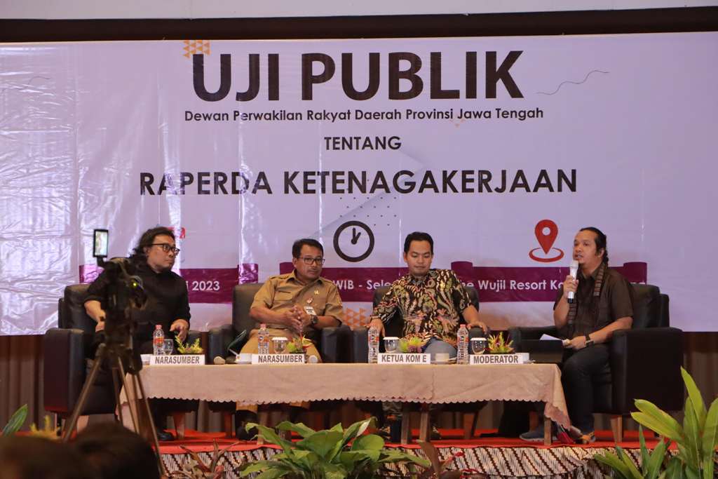 Hal ini dikemukakan Ketua Komisi E DPRD Jateng Abdul Hamid dalam kegiatan Uji Publik: Raperda Ketenagakerjaan, di The Wujil Resort and Conventions, Kabupaten Semarang, Senin (8/5/2023). Dalam hal ini turut hadir Ahmad Azis selaku Plt. Kepala Dinas Ketenagakerjaan dan Transmigrasi Prov. Jateng, Firmansyah selaku Akademisi Universitas Diponegoro.