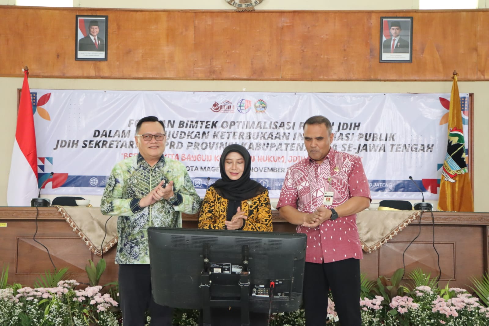 MAGELANG – Sekretariat DPRD Jawa Tengah memiliki aplikasi baru guna peningkatan optimalisasi penyebaran informasi peraturan perundang-undangan. Pada Jumat (15/10/2024), bertempat di Bakorwil VIII Jateng di Kota Magelang , diluncurkanlah aplikasi website Jaringan Dokumentasi Informasi Hukum (JDIH).