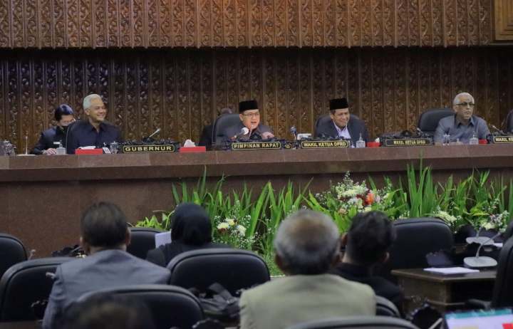 Kemudian dilanjutkan dengan agenda penjelasan Nota Keuangan RAPBD Jateng 2023 yang dibacakan Gubernur Ganjar Pranowo. Dalam penjelasannya itu, ia langsung memulai dengan laporan mengenai perekonomian.