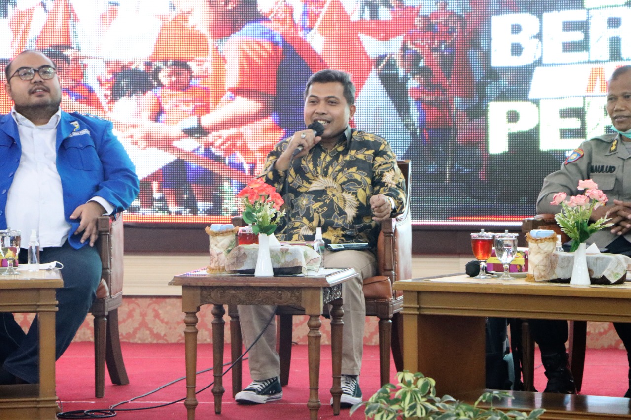JADI NARASUMBER : Wakil Ketua DPRD Ferry Wawan Cahyono menjadi narasumber dalam acara memperingati Harlah Pancasila 1 Juni di Gradhika Bakti Praja.(foto: azhar alhadi)