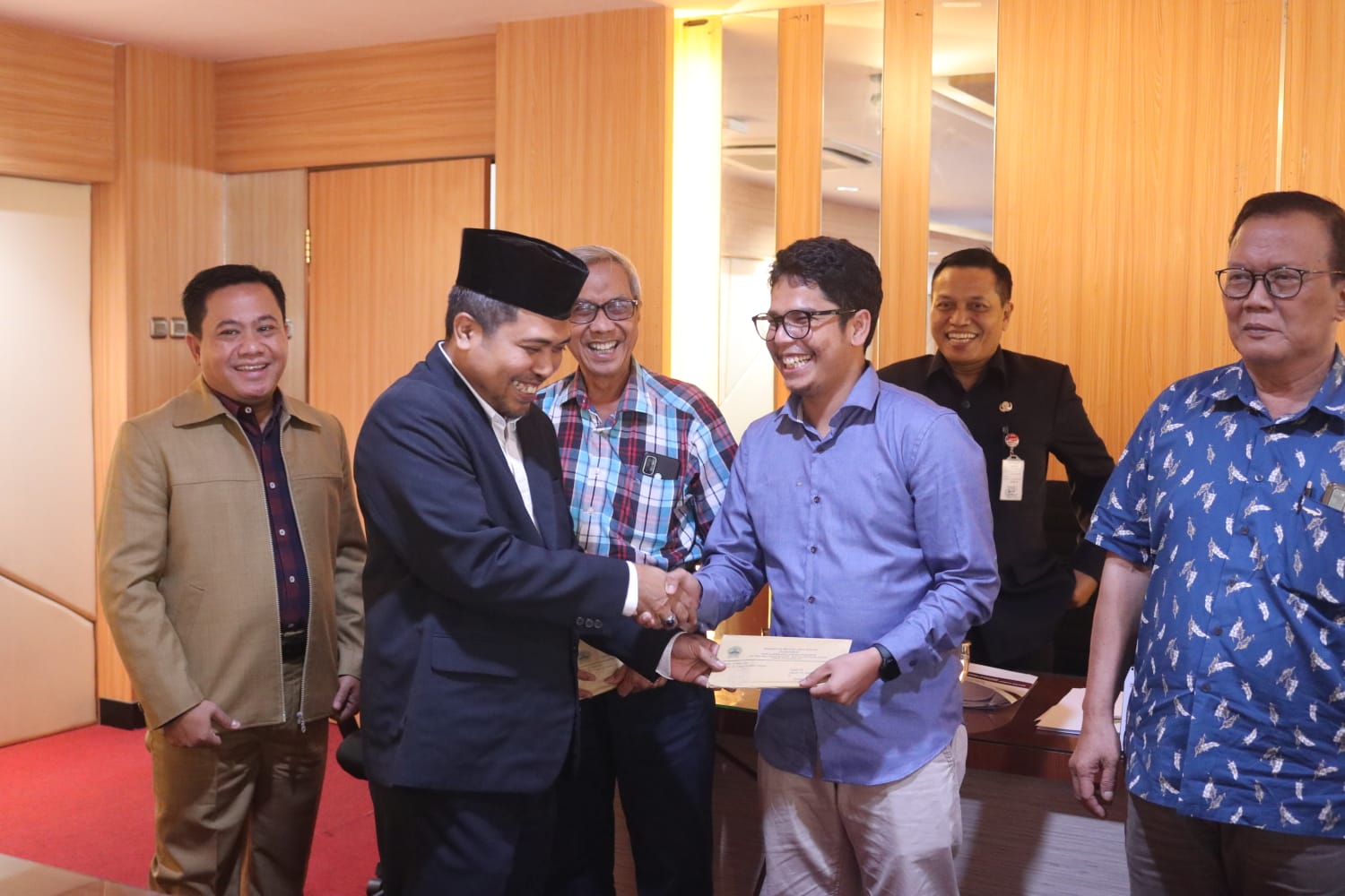 TERIMA SK : Pimpinan DPRD Jateng menyerahkan SK kepada perwakilan Tenaga Ahli dari lintas ilmu.(foto: sonidinata)